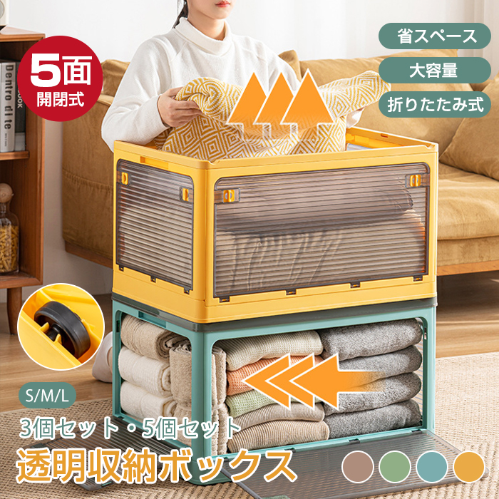 箱を積み重ねて使用可能、安定感抜群 お部屋もスッキリ 使わない時には折り畳んで、コンパクトに収納できます 大容量 透明可視 折りたたみ可能 多面開き 耐重圧 折りたたみ可能