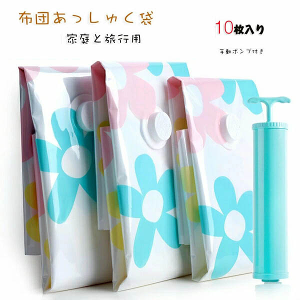 布団あっしゅく袋 家庭と旅行用 3枚 Large:110*80cm2枚 Medium:80*60cm3枚 Small:70*50cm2枚 extra small:60*40cm手動ポンプ付き10枚セッ
