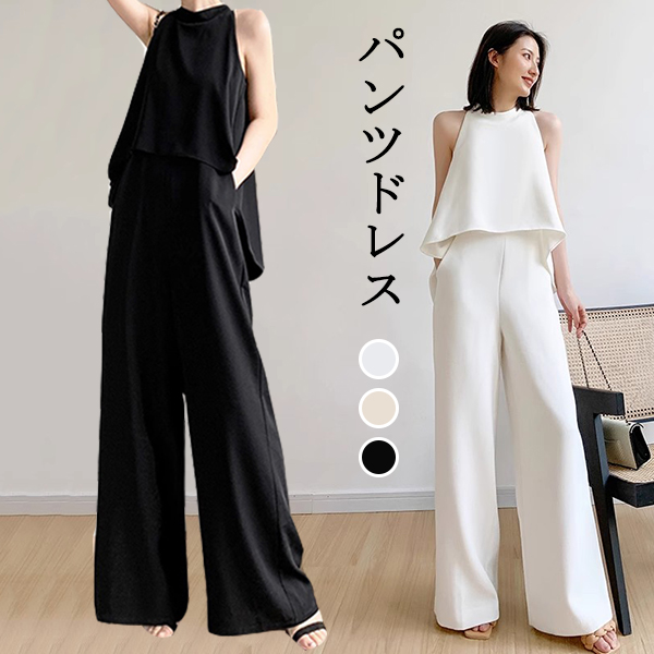 ワンピース 演奏会 二次会 結婚式 ホワイト ベージュ ブラック 黒 白 大人レディースファッション パンツドレス