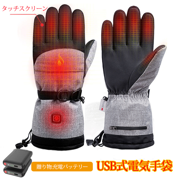 50000大容量の充電バッテリー2個付きです 電熱グローブ ヒーターグローブ 撥水 電熱手袋 温度調節可