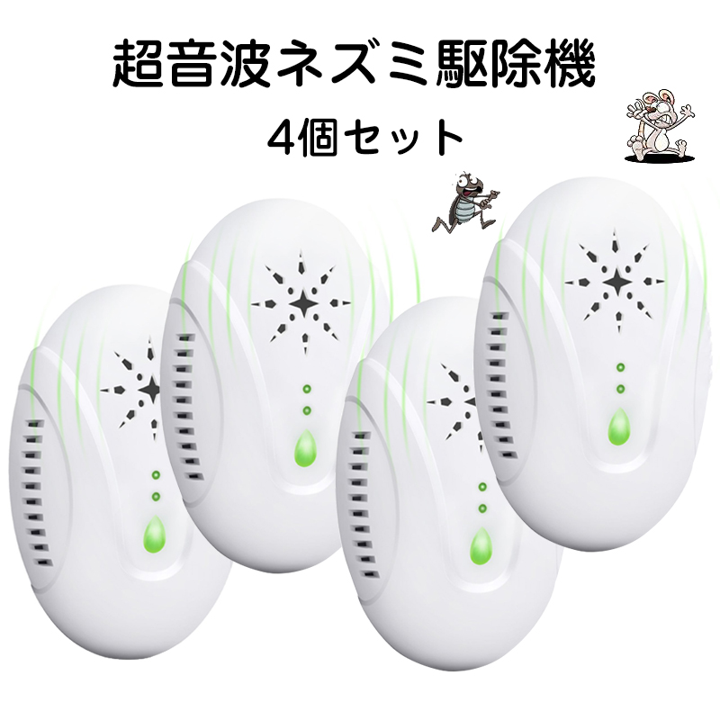 日本語説明書 ネズミ駆除機 4個セット 認証済み ネズミ撃退器 電磁波 ネズミ 駆除 害虫 駆除機 超音波 撃退器 ノミ ダニ撃退器 3種類超音波 無毒 最大有効範囲120平方メートル