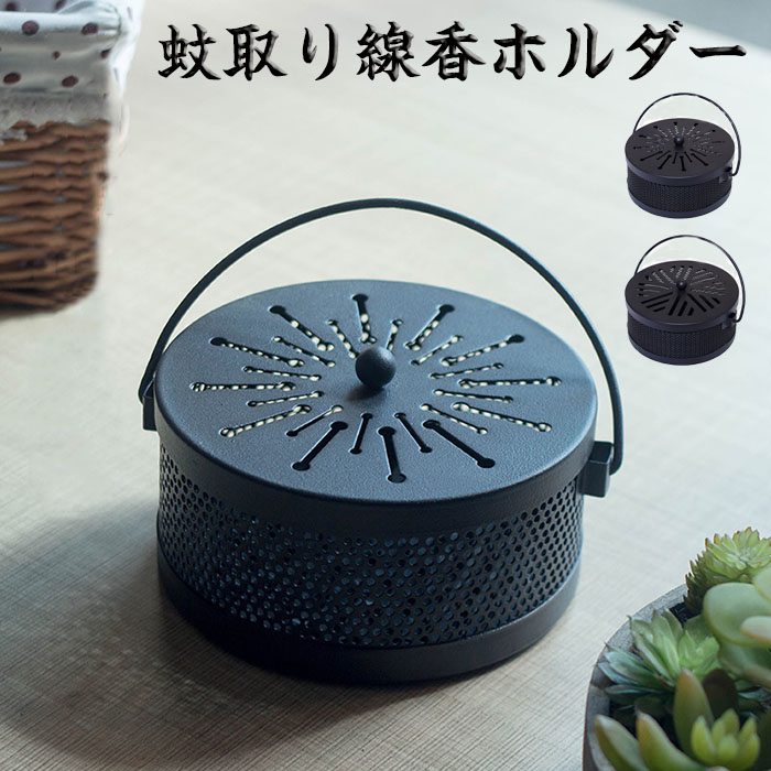 蚊取り線香ホルダー 鉄製 蚊取り線香入れ フタ付き 円形 レトロ 部屋 リビング インテリア リビング 庭