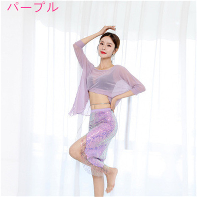 パープル ピンク 上下セットベリーダンス衣装 舞台服演出用レッスン着 ステージ衣装、練習用レッスントップス+ズボン 2点セット ブルーステージ衣装練習用 ベリーダンス ステージ衣装イベント ショートス
