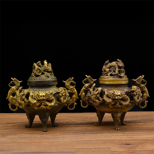 置物 風水 龍 お守り 置き 方 開運 祈願 グッズ 風水グッズ香炉 銅製 雑貨 香皿 仏具 聞香 香道銅製の風水香炉 小さい