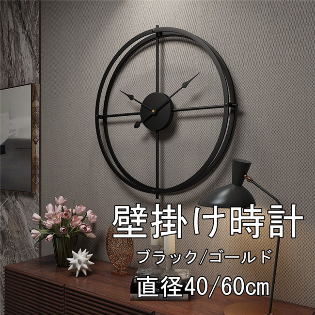 直径40 60 掛け時計 北欧 壁掛け時計 壁時計 新築祝い かけ時計 ブラック ゴールド ギフト プレゼント キッズルーム 子供部屋 寝室 リビング 店舗 おしゃれ 北欧 ウッド