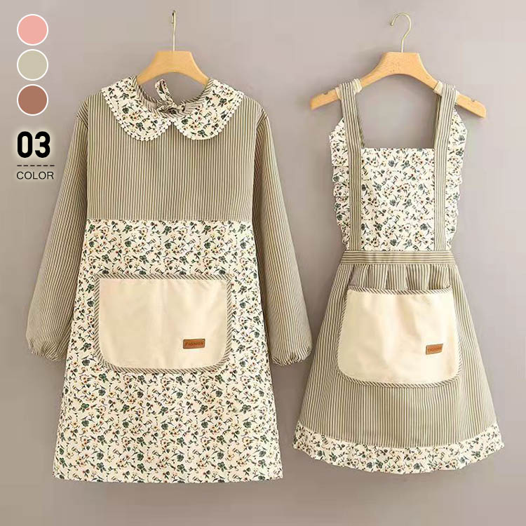 エプロン 2点セット おしゃれ ワンピース レディース メンズ 北欧 保育士 カフェ ロング丈 かわいい ナチュラル 大きいサイズ シンプル 動きやすい