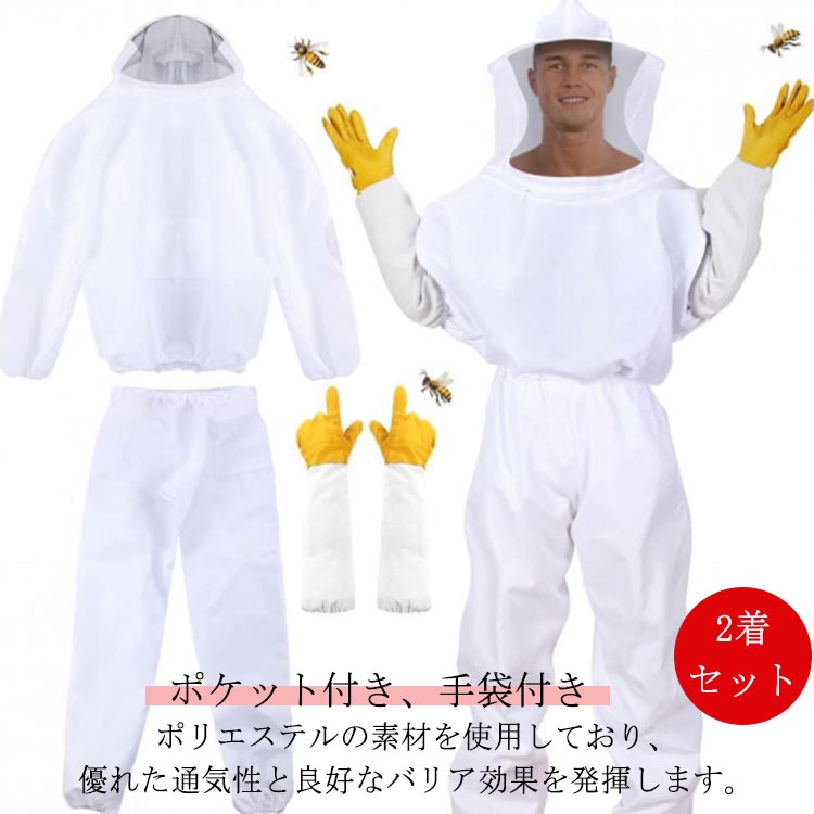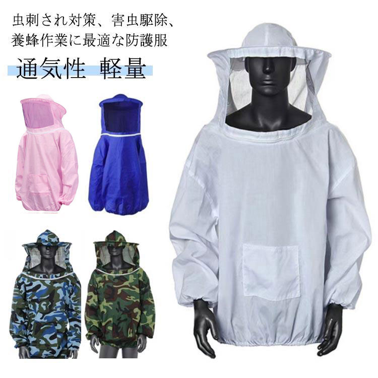 蜂防護服 蜂 ハチ 防護服 養蜂用 防護 服 ホワイト 蜂対策 グッズ フェイスネット付 養蜂ジャ 養蜂 ジャケット 蜂巣 害虫駆除 虫よけ 農業 畑 作業