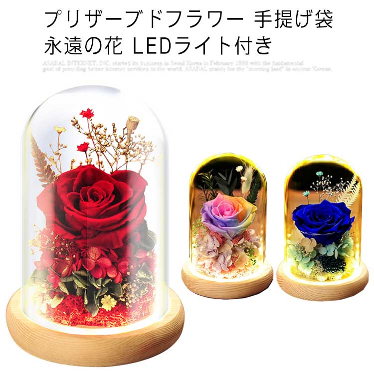プリザーブドフラワー 枯れない花 ガラスドーム 薔薇 ドライフラワー バラ フラワーギフト ギフトボックス 手提げ袋 永遠の花 LEDライト付き
