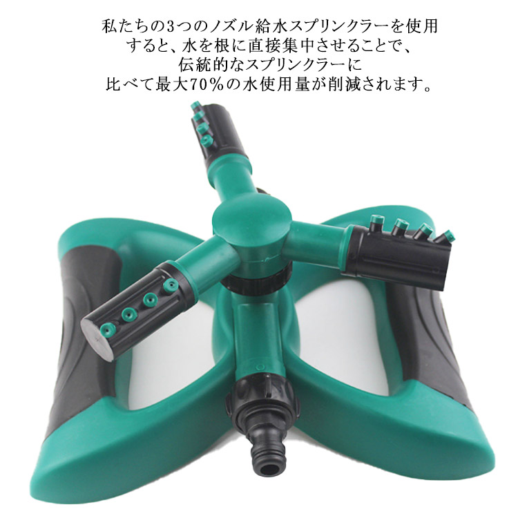 スプリンクラー 360°回転可能 自動散水器 調節可能 3ノズル付き花 ガーデン DIY ガーデニング 農業 散水 潅水用具 スプリンクラー