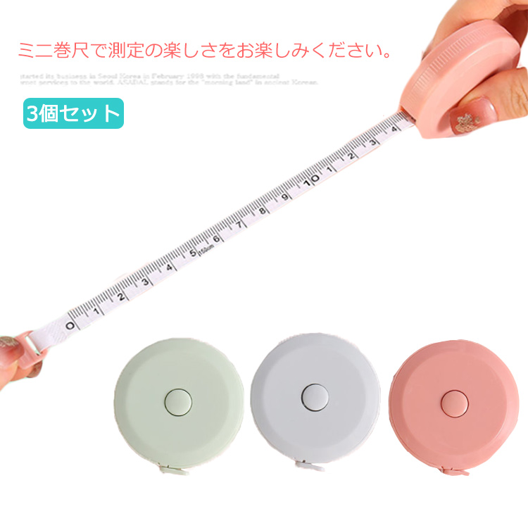 3個セット 1.5mと1.8m コンベックス ミニ巻尺 胸回り測定 ウエスト測定 メートル法 両面 北欧風 高精度 巻き尺 距離 面積測定 測定工具 学生用 文房具