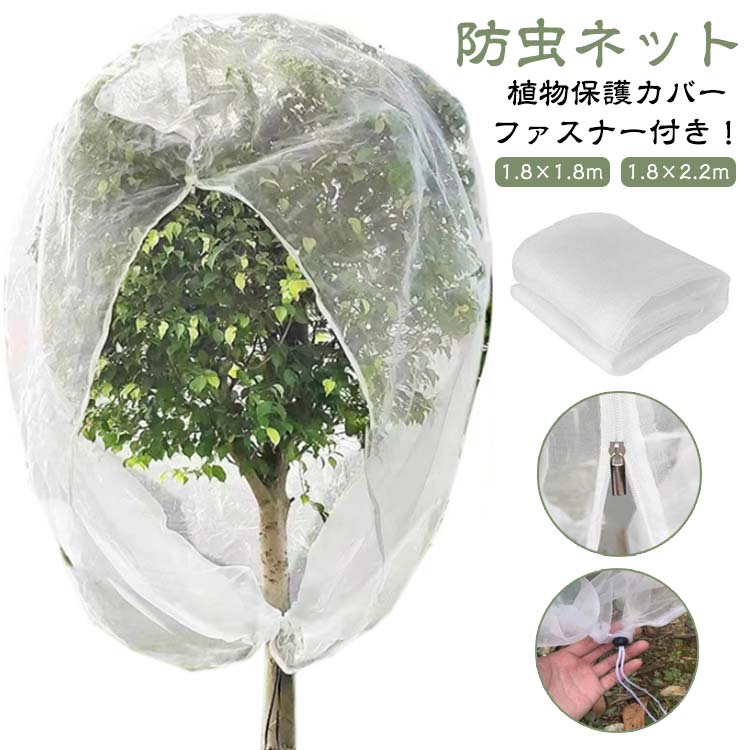 家庭菜園 防虫ネット 巾着式 ファスナー付き 植物保護カバー 1.8*1.8 1.8*2.2 植物保護袋 果樹