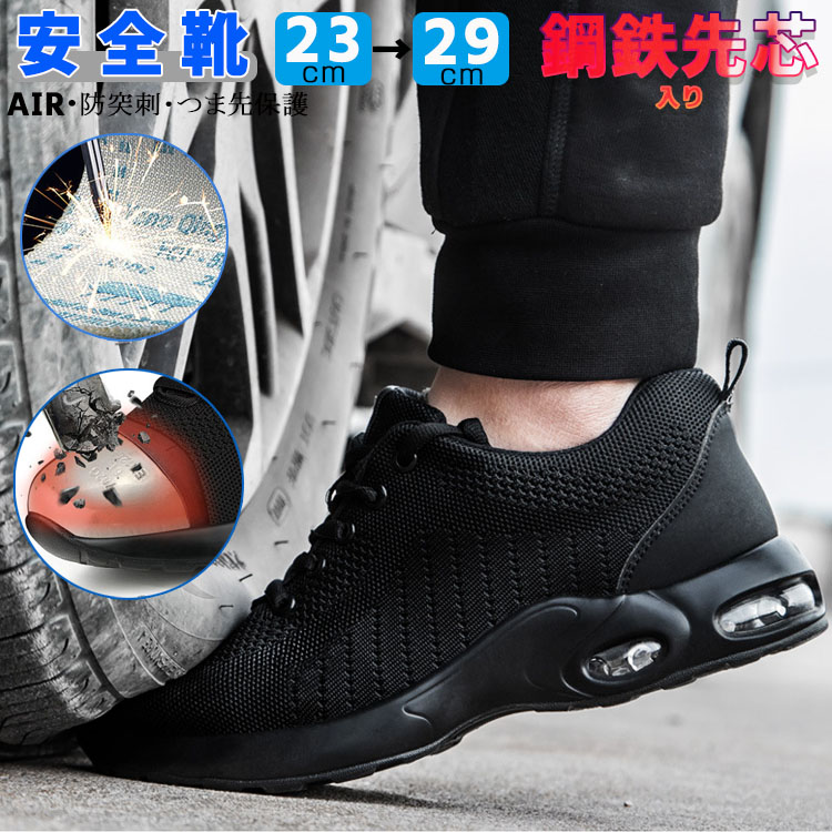 安全靴 AIRスニーカー レディース メンズ 大きいサイズ 敬老の日 29 30cm 軽量 室内 用 運動 シューズ 雨の日 通気性が優れた ブラック 疲れない