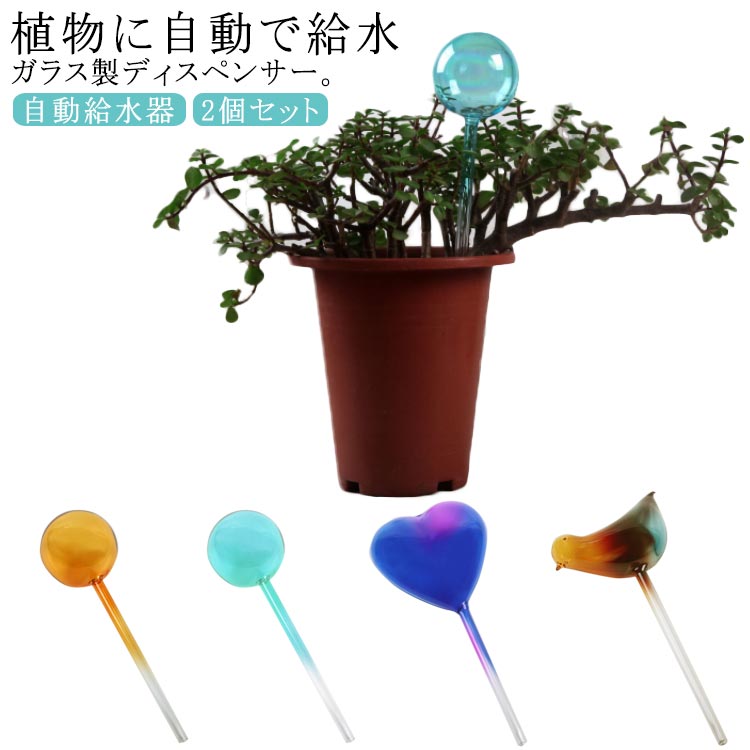 水差し 鉢植え 観葉植物 自動給水器 2個セット 自動水やり器 給水 カラー ガラス 自動水や花 ガーデン ガーデニング 農業 散水 潅水用具 自動水やり器