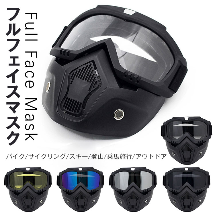 フルフェイスマスク 保護メガネ オートバイマスク セーフティゴーグル ライディング UVカット アウトドア 取り外し可能 保護用品 防風 安全 通気 戦術 おしゃれ PV素材 バイク マスク