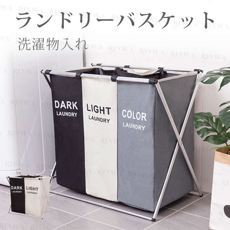 普通のプラスチック製の洗濯かごとは異なり、布製でいっぱいになっても押し下げるだけで収納できま す インテリア 寝具 収納 収納家具 ランドリーボックス バスケット