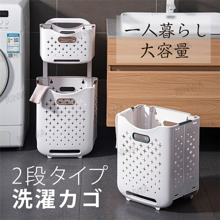 ランドリーバスケット 2段 洗濯カゴ おしゃれ 洗濯カゴが付いたランドリーラック2段タイプ 洗濯や脱衣に使える シンプルで使いやすい♪