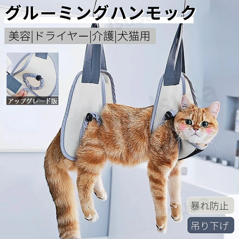 グルーミング ハンモック 小型犬 猫 爪切り 吊り下げ 爪切り補助具 ペット用品 トリミング 耳掃除 歯みがき 目薬 服薬 検査 暴れ防止 字フック付き