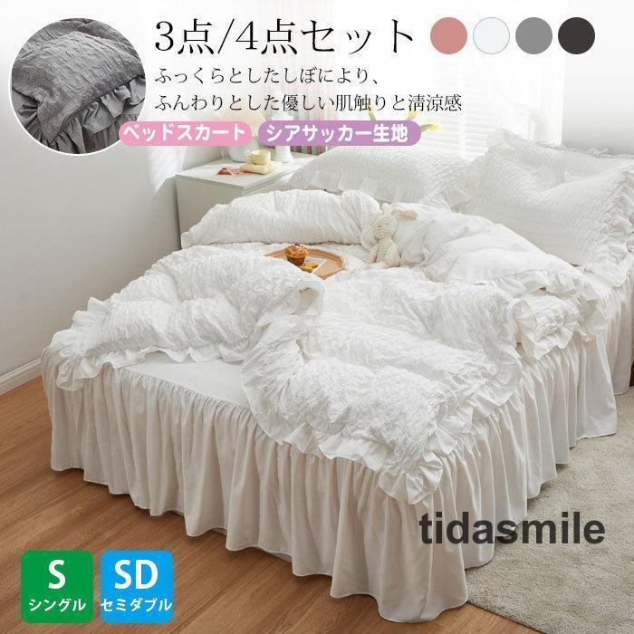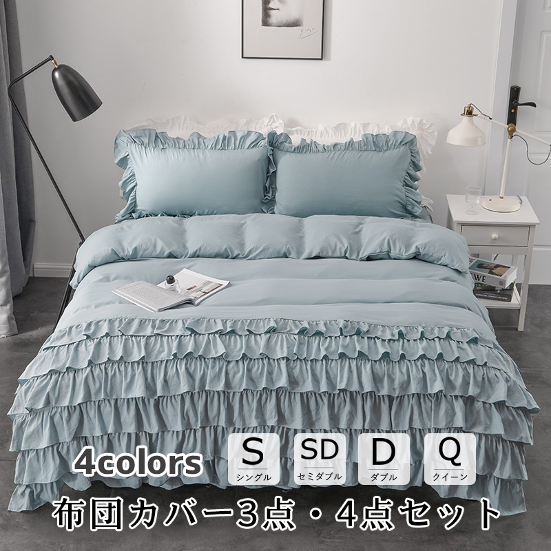 フリル 布団カバーセット 3 4点セット シングル セミダブル ベッインテリア 寝具 収納 寝具 寝具カバー シーツ 寝具カバーセット