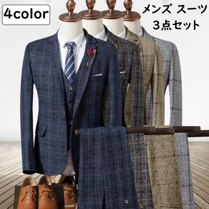メンズスーツ チェック柄 韓国風 細身 着痩せ 3点セインテリア 寝具 収納 寝具 寝具カバー シーツ 寝具カバーセット