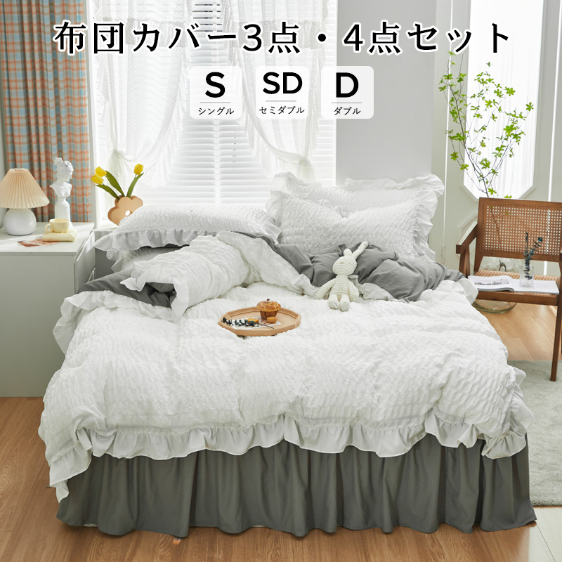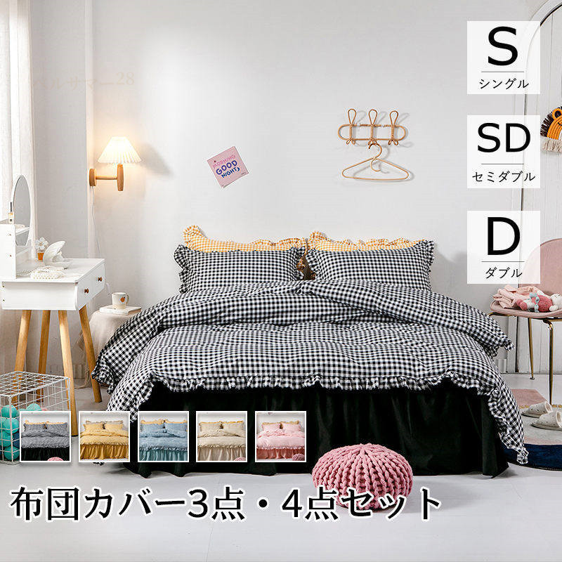 布団カバー 北欧 おしゃれ 3点 セット 4点セット 寝具ベッドカバー3点 4点7色シングルダブルセイミダブル150×210 170×210190×210CM北欧風ベッドカバーセット