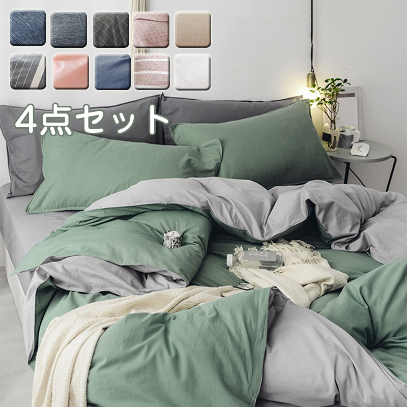 寝具カバー4点セット 掛け布団カバー 寝具カバー 4点セット 敷布団カバー 掛布団カバー ベッドシーツ 枕カバー ベッドカバー 北欧 おしゃれ 可愛い 9色選択