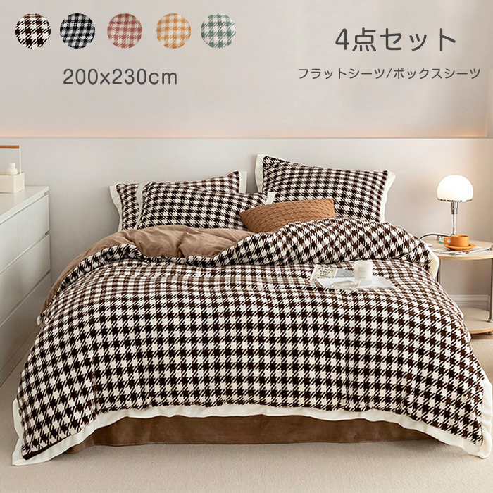 掛け布団カバー 4点セット 布団カバー シングル ダブル ブランケット チェク柄 フラットシーツ ボックスシーツ フランネル 秋冬 保温性高い 丸洗い