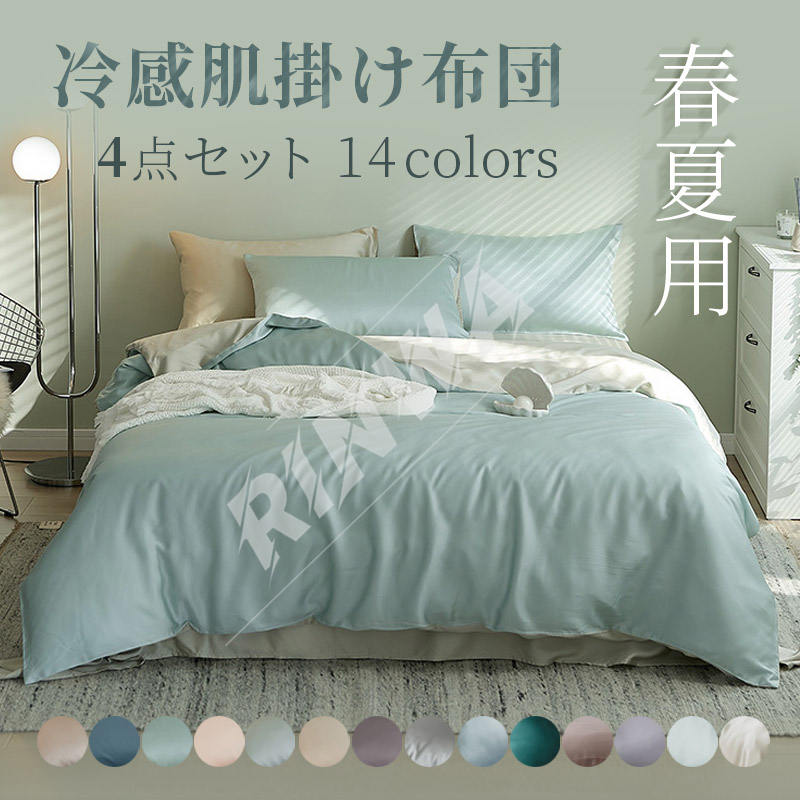 涼感布団カバーセット 4点セット 枕カバー+フラットシーツ+掛け布団カバー 掛けカバー 北欧 掛け布団カバー 布団カバーセット ダブル 布団カバーセットキング 布団カバーセット