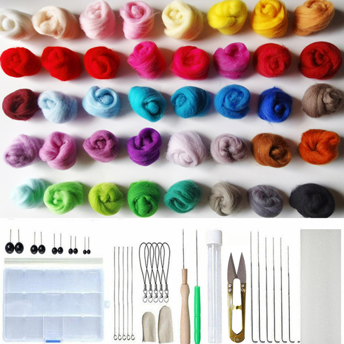 羊毛フェルトキット 40色 フェルトキット 手芸制作 ウールフェルト フェルト ツール 基本入門キット