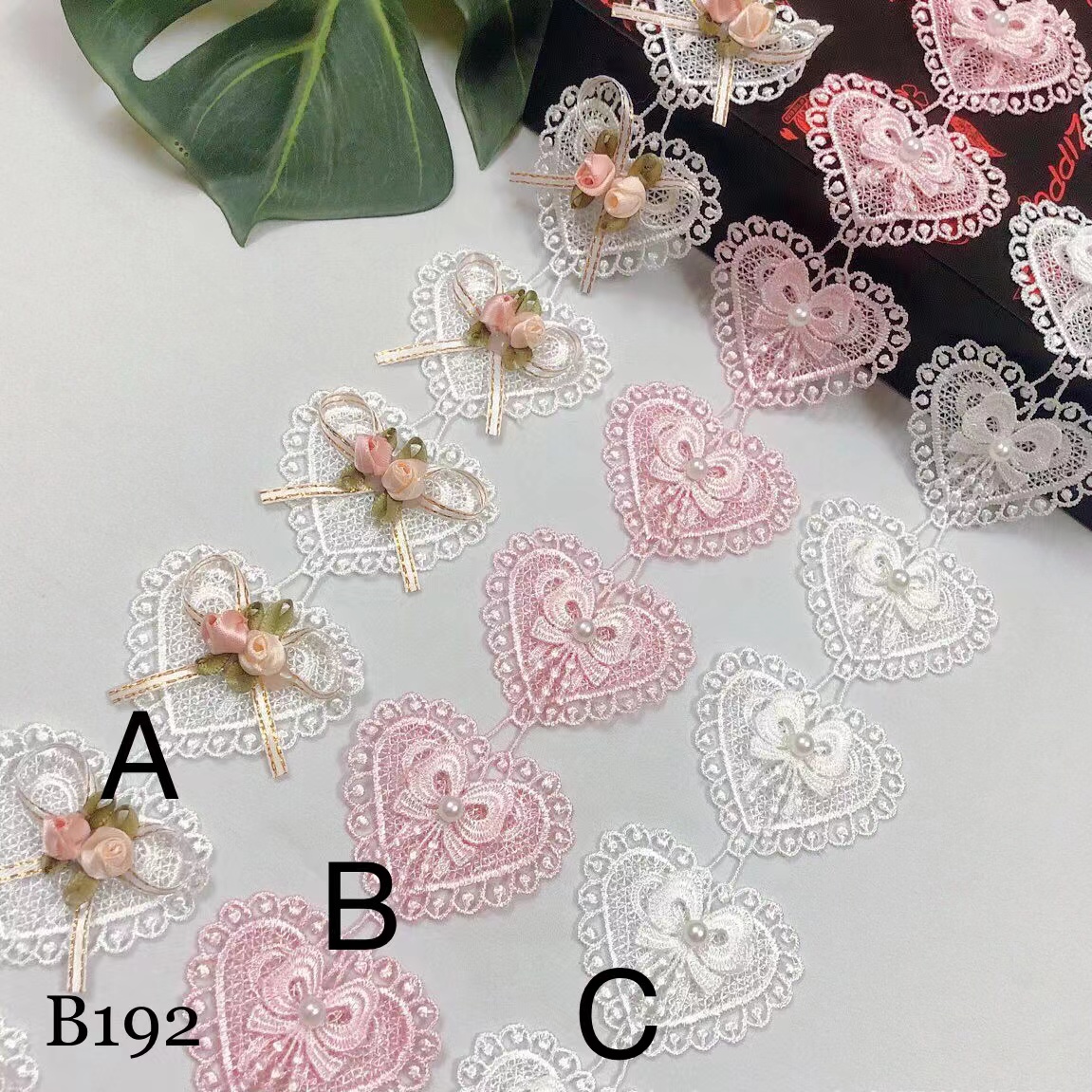 レースリボン ハート柄 ハンドメイド ビーズ付き 手芸 手作り ウェディングドレスパーツ 刺繍単位2m B192