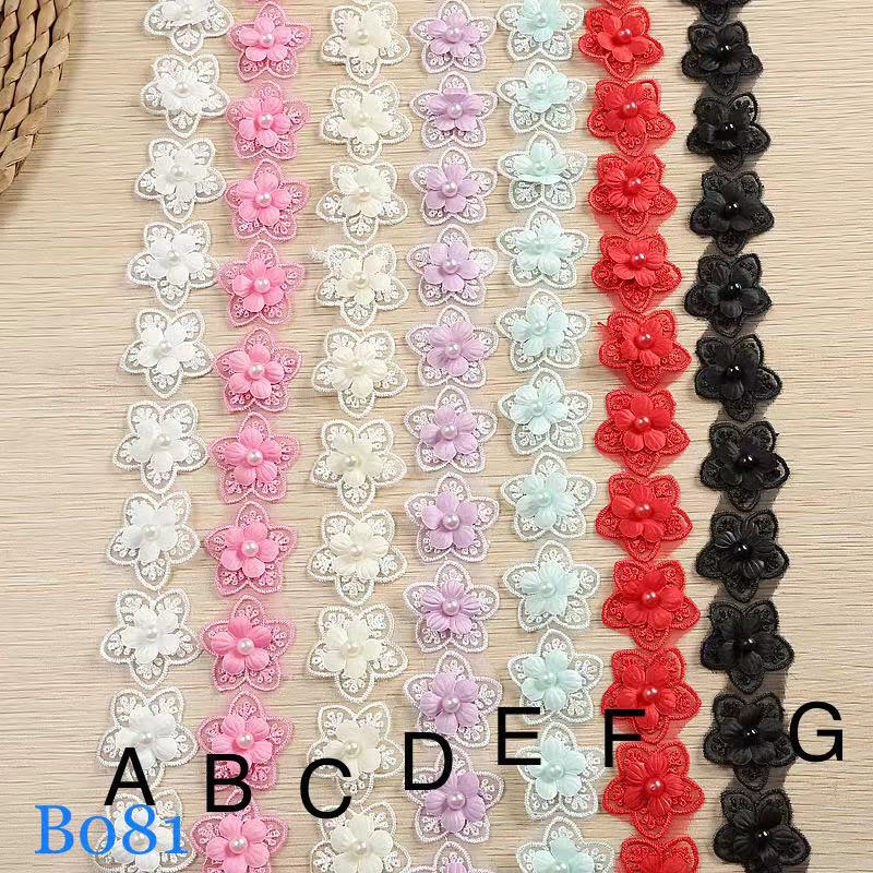 レースリボン 花柄 ハンドメイド ビーズ付き 手芸 手作り ウェディングドレスパーツ 刺繍 2 081