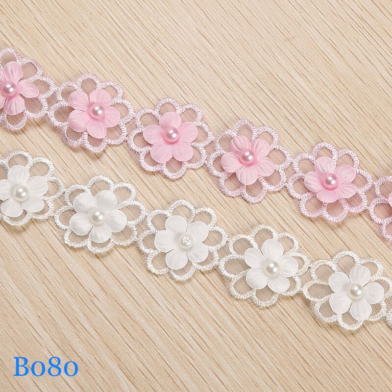 レースリボン 花柄 ハンドメイド ビーズ付き 手芸 手作り ウェディングドレスパーツ 刺繍 2m B080
