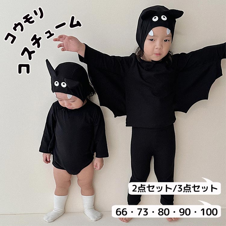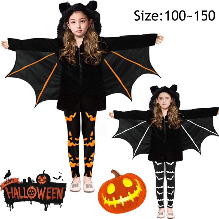 ハロウィン 衣装 子供 コウモリ 黒 2点 女の子 コスチューム キッズ コウモリ コスプレ コスチューム オールインワン オーバーオール 着ぐるみ ジュニア コスチューム 仮装 キッズ 子供用