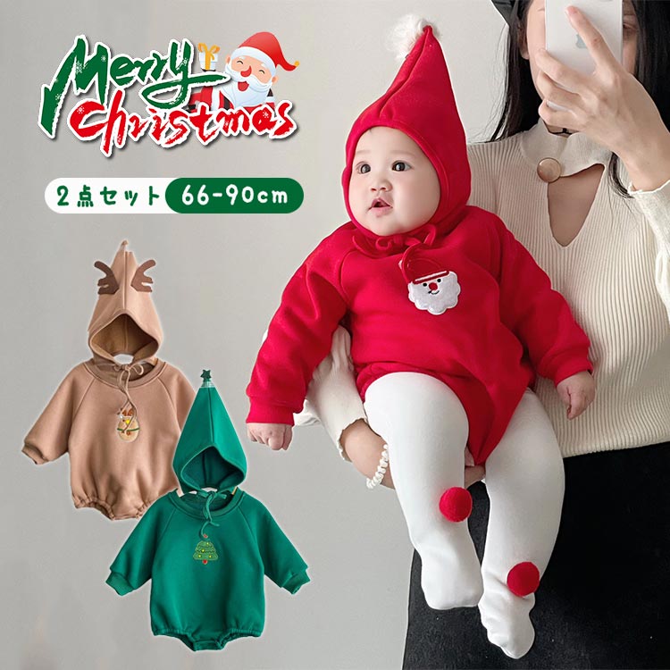クリスマス ベビー服 おしゃれでかわいい クリスマス雰囲気満点 キッズ セットアップ 帽子付き レッド グリーン キッズ