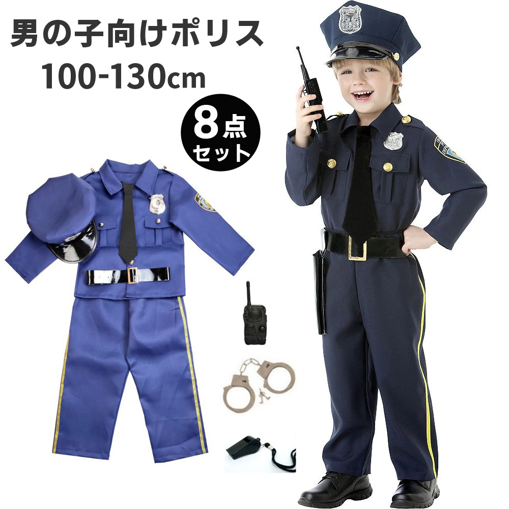 8点セット ハロウィン コスプレ 仮装 ポリス 警察 男の子 警察服 ハロウィン コスプレ衣装 警官 子供 警察官 ポリス キッズ お巡りさん ハロウィーン コスチューム 変装