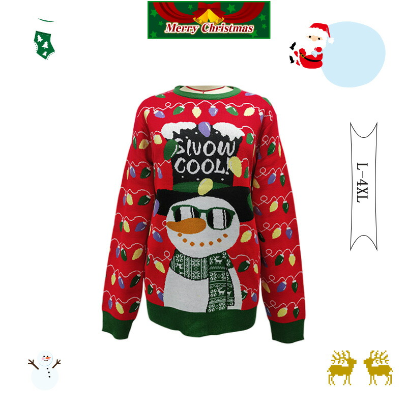 セーター クリスマス ニット 大人 雪だるま 厚手 ハイネック M L XL 2XL 3XL 4XL