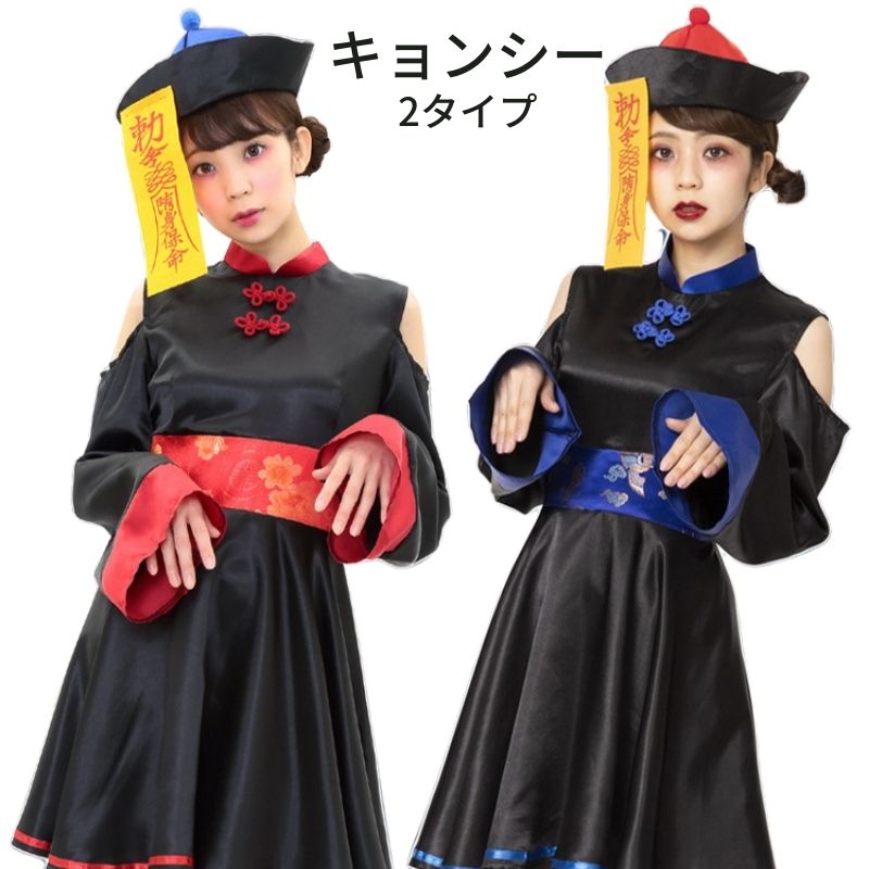 中国 お化け 定番 妖怪 お化け ゾンビ コスプレ ハロウィン 衣装 仮装 キョンシー コスチューム 雰囲気抜群のキョンシーコスチューム 黒基調でかっこいい