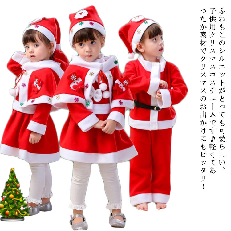 サンタクロース コスプレ 仮装 パーティー ベビー サンタ 女の子 トナカイ 衣装 クリスマス キッズ 子供 男の子 ケープ付き サンタ服装 サンタクロース ダンス衣装 サンタコス セット 帽子付き