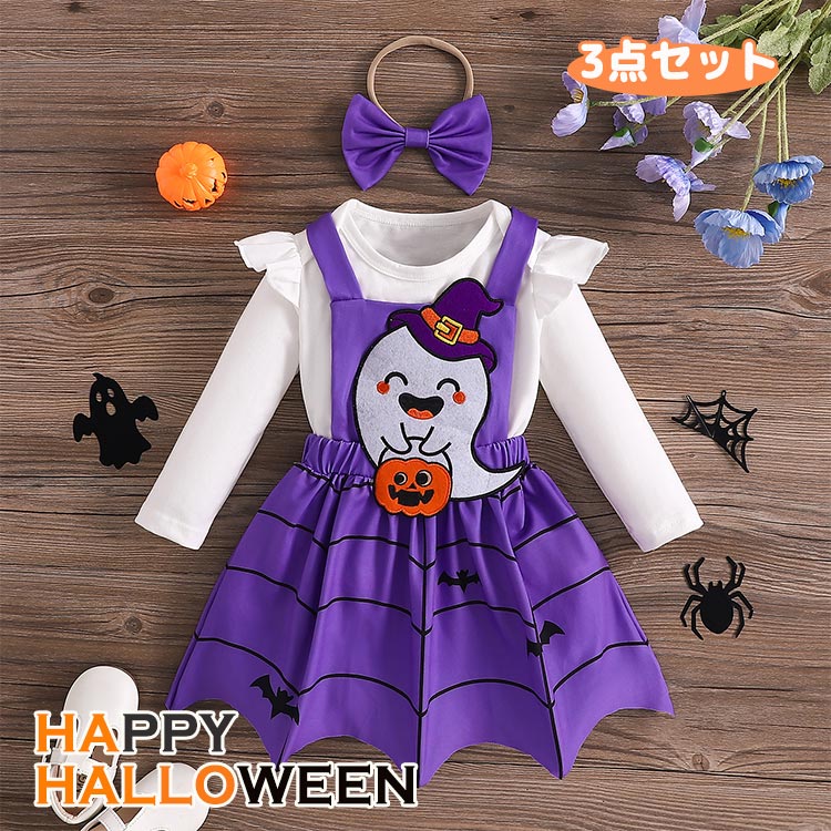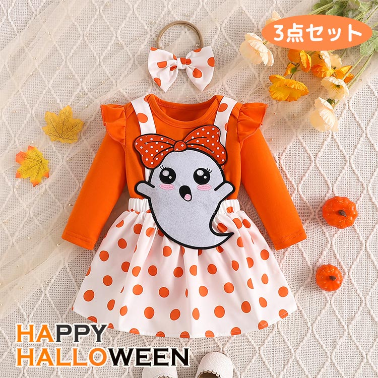 ヘアバンド付 ハロウィン衣装 ベビー用 3点セット 長袖 ロンパース スカート 女の子 セットアップ服 3-24