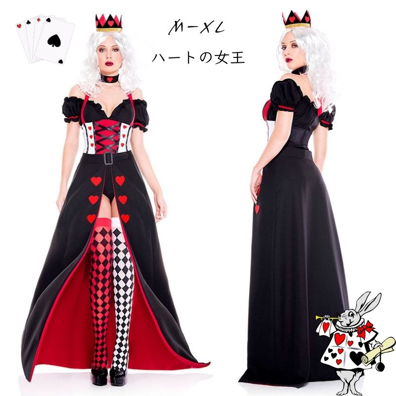 ハロウィン コスプレ コスチューム ハートの女王 皇后 ピエロ 仮装 衣装 道化師 トランプ 魔女 巫女 女王 手品師 巫女 ドレス レディース 女性用 演出服 仮装衣装装 文化祭