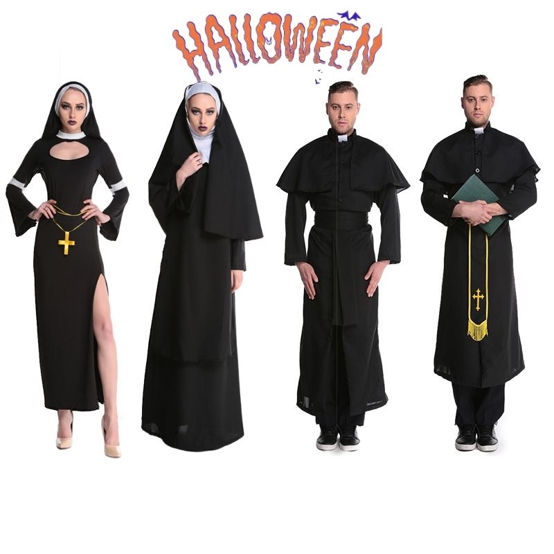 ハロウィン コスプレ 仮装 シスター 十字架 長袖 コスチューム 仮装 レディース かわいい 可愛い 男女兼用 雰囲気抜群のコスチューム 黒基調でかっこいい