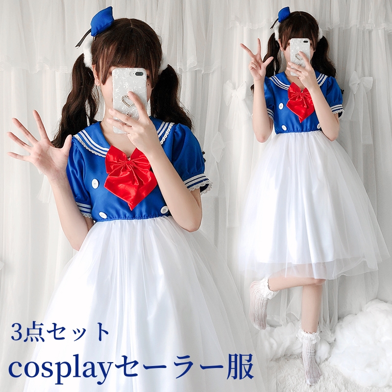 コスプレ衣装 ハロウィン 3点セット コスチュームセーラー服 アヒル ダック衣装 大人 レディース 女の子 かわいい 大きいサイズ アヒルちゃん 海軍 演劇 発表会 遊戯会