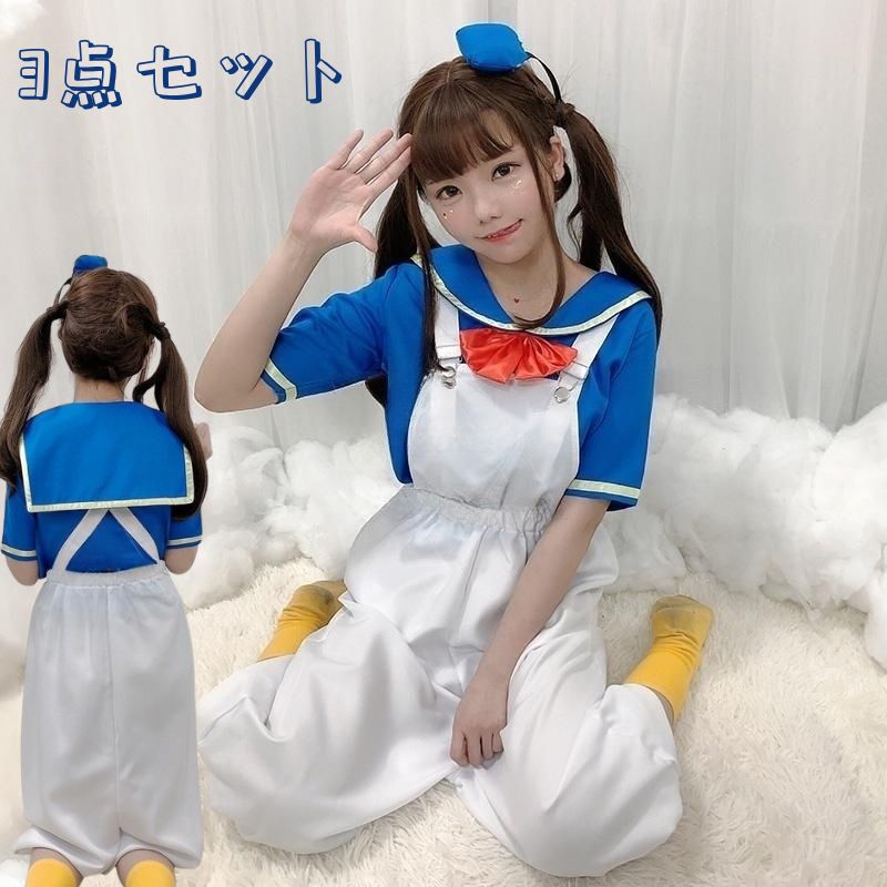 3点セット ハロウィン コスプレ衣装 duckダック コスチュームセーラー服 アヒル ダック衣装 大人 レディース 男の子 かわいい 大きいサイズ アヒルちゃん 海軍 演劇 発表会 遊戯会