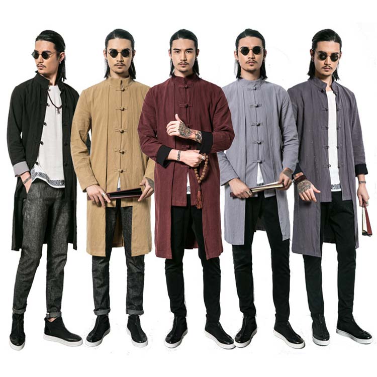 カンフー服 メンズ 太極拳服 チャイナ服 リネンジャケット 中国チャイナ風 リネンコート 太極拳ウエア 重ね着風 綿混 ミドル丈ジャケット 演出服 コスプレ衣装 棉麻ブラウス 稽古着