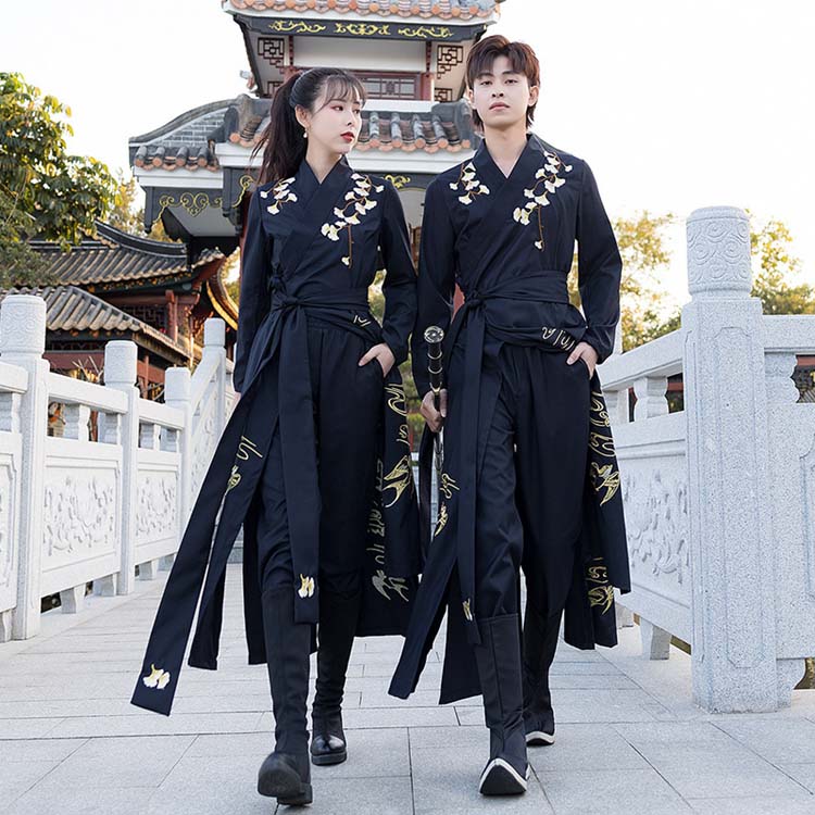 カップル 漢服唐装 男女兼用 パンツセット メンズ レディース 中華伝統漢服 ロング丈シャツ 春 夏 秋 花柄 刺繍 中華古風 コスプレ衣装コスプレ漢服 チャイナ舞台ステージ服