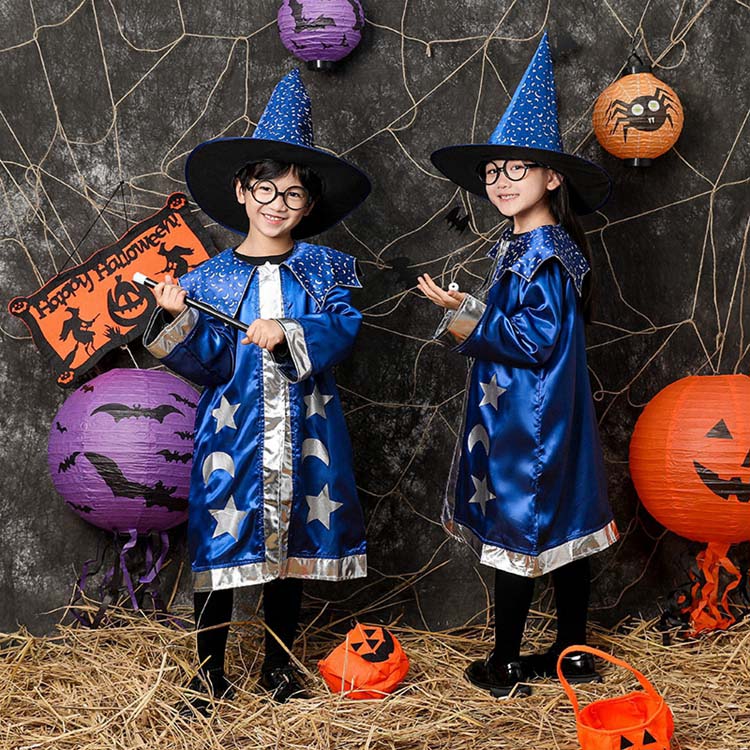 ハロウィーン衣装 魔女 女の子 コスプレ衣装 男の子 仮装 魔法使い 青 子ども 魔法 可愛い 魔法杖 マント ドレス キッズ 魔術師 精霊 魔女 パーティー 帽子 誕生日 発表会 学園祭