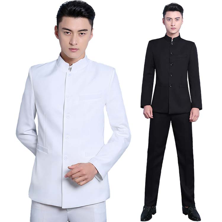 民国時代人民服 メンズ用制服 武術 カンフーコスプレ衣装 唐装漢服 男性用演出服 写真撮影スーツセット 舞台ステージ衣装 仮装変装 中学生制服 黒白2色 チャイナ服