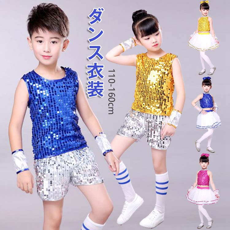 スパンコール衣装 キッズ トップス ダンス衣装 ヒップホップ スパンコール 社交ダンス ショート丈 コスチューム ダンスウェア ラテン ノースリーブ ジャズ 女の子 男の子 ジュニア