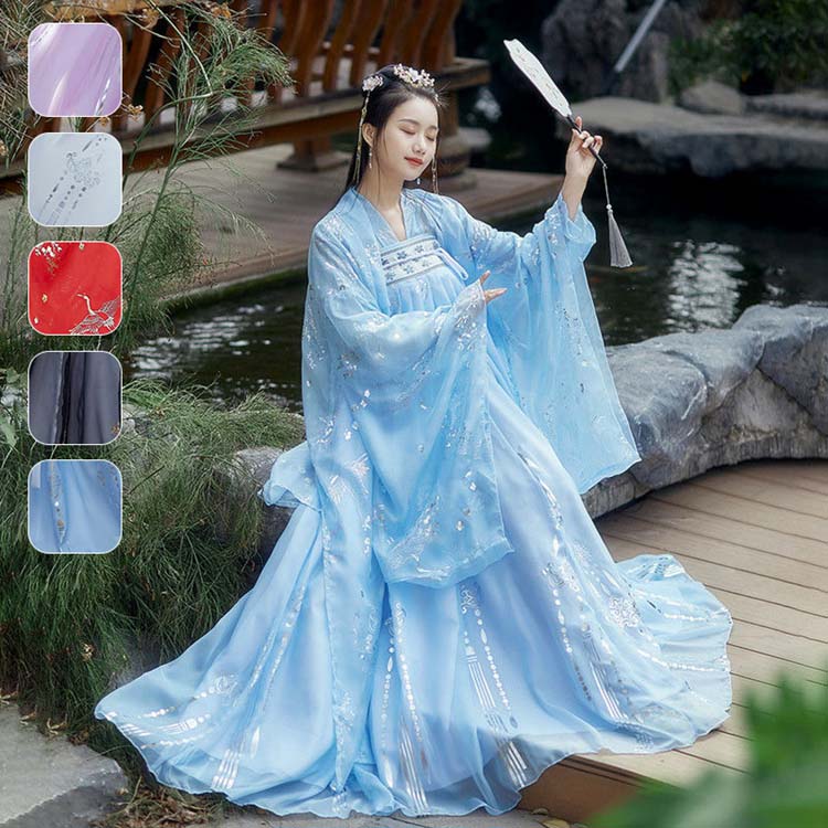 5色 唐装漢服 中華服舞台服装 華流ステージコスプレ衣装 中国古代宮廷風コスプレ衣装 イベント 学園祭パーティーダンス衣装 チャイナドレス 写真撮影ドレス 演出服 振袖 引き裾 唐朝貴妃服
