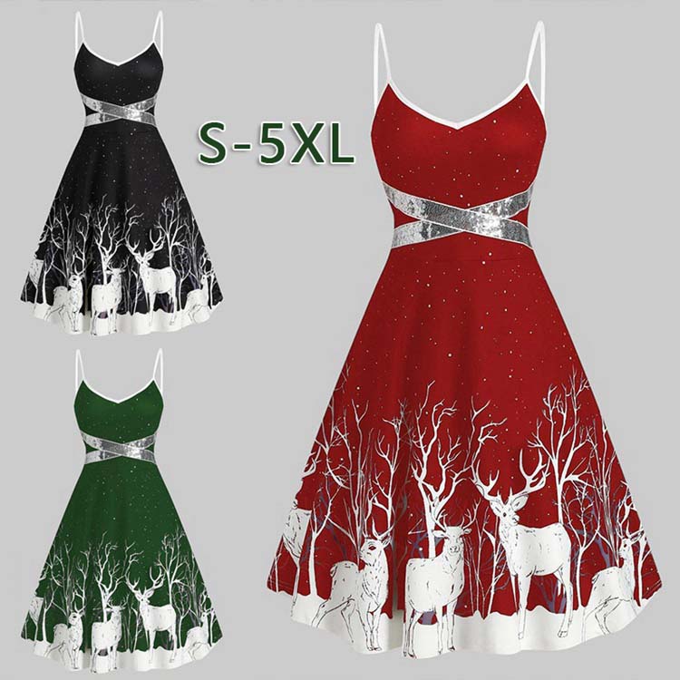 クリスマスドレス レディース コスプレ 女性 ドレス キャミソールドレス トナカイ柄 3color コスチューム サンタ クリスマス 引き裾 トナカイ ロング丈 細身ワンピ 舞台服 お揃い