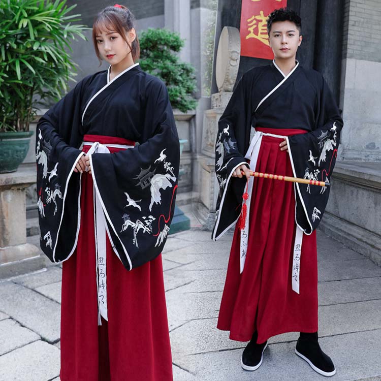 チャイナ服 漢服 メンズ レディース 中華コスプレ衣装 華流 ハロウィン衣装 チャイナ風 中華服 広袖 振り袖 交差した襟 袴風 スカート エスニック刺繍 古代中国 上下セット
